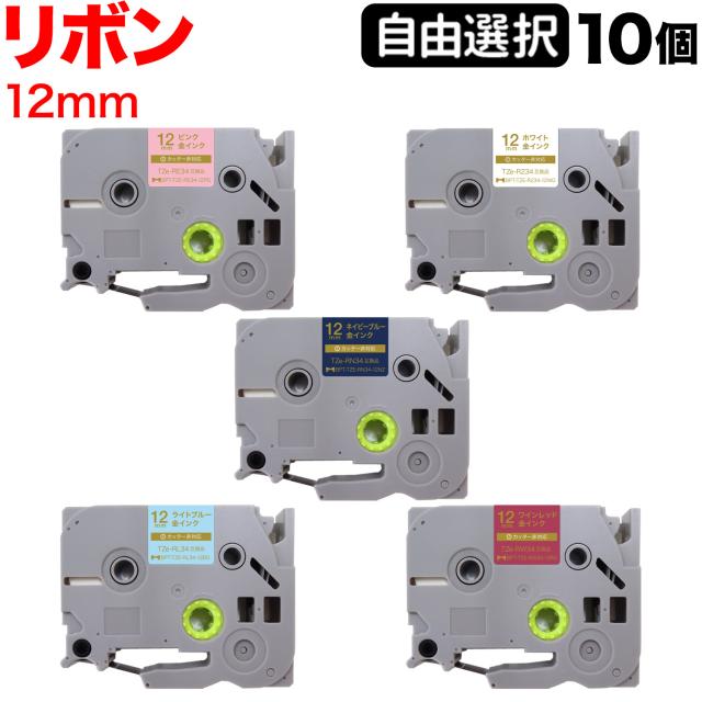 ブラザー用 ピータッチ 互換 テープ リボンテープ 12mm フリーチョイス(自由選択) 全5色 【メール便送料無料】 色が選べる10個セット