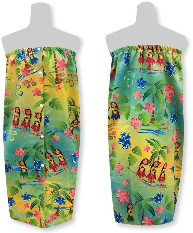 アスカ ASKA マリン まきまきたおる ハワイアン柄まきたおる フラガール タオル サラッとドライ ラップタオル 海 プール マリンスポーツ 着替え 軽量 コンパクト 子供 大人 ASKPMA2HUL GRN