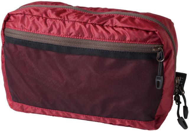 小物の収納に便利な小型ポーチバッグ。フロント部にメッシュポケットを設け、内側にはキーホルダーを備え付けました。開口部は両サイドにカベマチを設け、ファスナーを全開にしても中身がこぼれ落ちにくい仕様に。また、左右上下の四隅に小さなループを付けているので、キーカラビナ等を使って、バックパックのショルダーハーネスなどに取り付けが可能です。※この商品は防水仕様ではありません。
