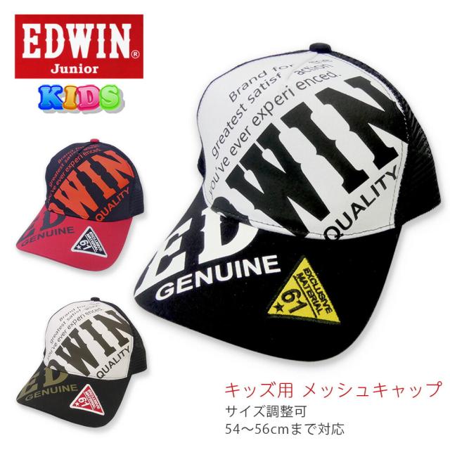 EDWIN エドウィン キッズ メッシュ キャップ ロゴ ED168 メッシュキャップ ブラック ホワイト レッド 子供用 帽子 サイズ調整 春 夏 秋 日よけ 日除け 男の子 女の子 54cm 56cm 幼稚園 保育園 小学生 ブランド 人気 スポーツ 夏休み レジャー 旅行