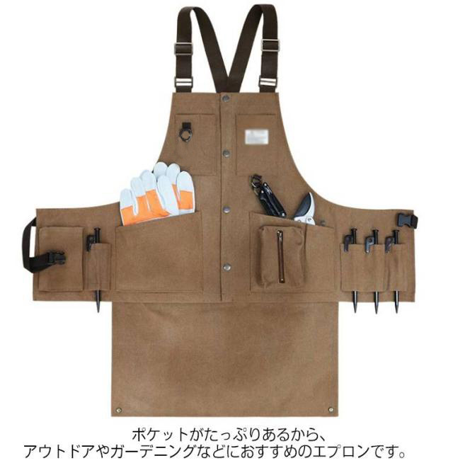 | ・アウトドアシーンでも目を引くデザインと機能性を備えた3wayキャンバスエプロン ・ポケットがたっぷりあるから、アウトドアやガーデニングなどにおすすめのエプロンです。 ・前掛けは上向きに固定すれば大きなポケットとして使用可能。 ・ユニセックスでカラー展開も豊富なので自分らしいキャンプスタイルを楽しんでいただけます。 ・ご自宅用にはもちろん、新生活を始められる方やDIY好きの方へのプレゼントにもおすすめです。 | |