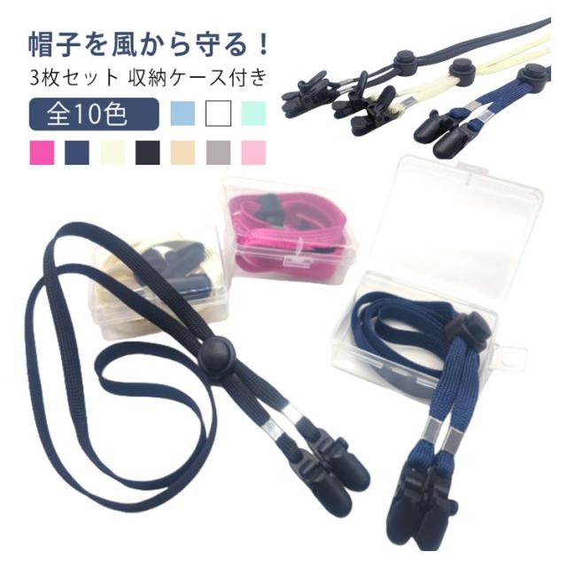 【3枚セット クリップ ストラップ 帽子 収納ケース付き】 飛ばない ハットクリップ あご紐 ハット用 ストラップ クリップ式 レディース 【3枚セット メンズ 風飛び防止 落下防止 帽子固定 強風対策 男女兼用 子供 キッズ