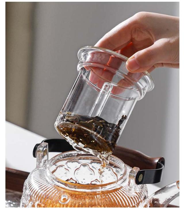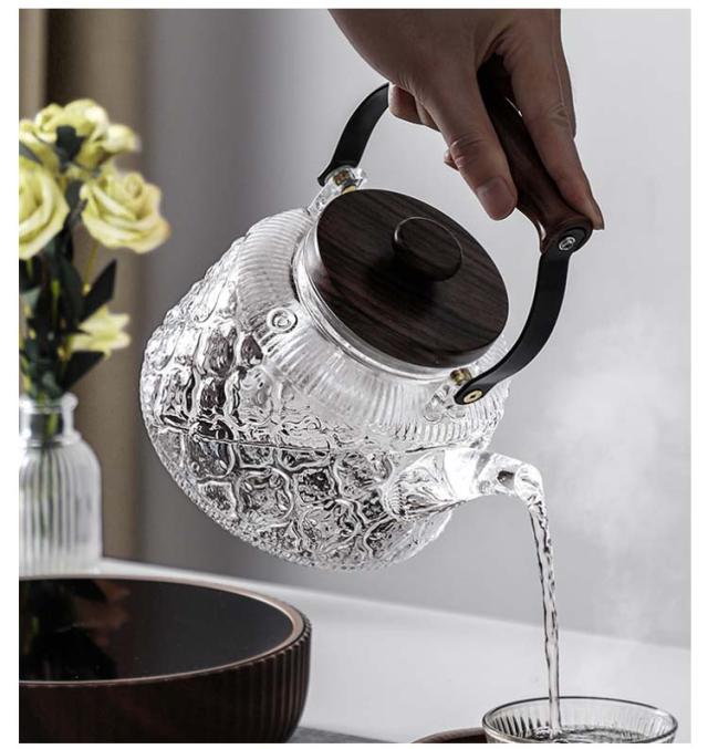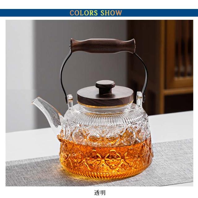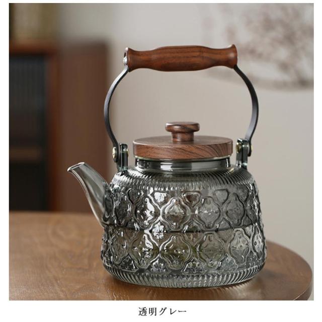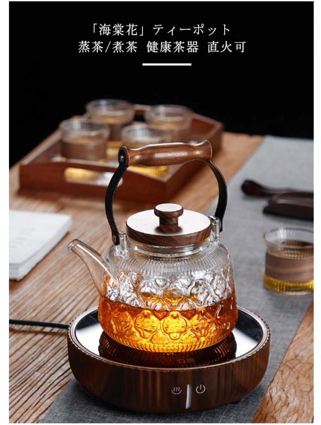 海棠花 ガラス製ポット 1000ml 茶こし付き 耐熱ガラス ティーポット ガラス急須 紅茶ポット フルーツティー/花茶/工芸茶/ハーフティー 蒸茶 煮茶 木製持ち手