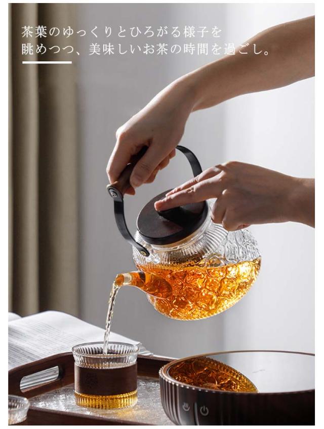 | 耐熱ガラスだからできる万能型お茶ポット。「海棠花」 ティーポット 蒸茶/煮茶 健康茶器 直火可 茶葉のゆっくりとひろがる様子を眺めつつ、美味しいお茶の時間を過ごし。 日本茶はもちろん中国茶や紅茶などにも似合うデザインは安っぽさがなく、手頃な価格でおいしいお茶が楽しめます。 ハンドルはしっかりと握ることができます。 | |
