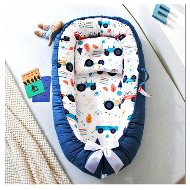 | 持ち運びやすいベッドインベッド。【枕付き】 赤ちゃんを寝かせておく、クーファンとしてはもちろん、お昼寝マット、プレイマットに使える添い寝ベッド! 新生児〜寝返りをうつ前までのお子様にお使いいただけます。 お出かけ先での休憩に、リビングなどでのおひるねにも使えます。 ママのお腹の中のように、囲まれた空間設計をしました。 くるまれる安心感で赤ちゃんは安らぎ、睡眠をとることができます。 クッションのような素材柔らかくて衛生で、それに通気性が高いので、赤ちゃんの健康にいいです。 カバーは敏感な赤ちゃんの肌に直接触れるコットンを使用。ふんわりとした風合いで、お肌に優しい生地です。 ベビーがスリーピングする時、枕はベビーをたっぷりと眠らせます。 布団がおくるみとしてもお使い頂けます。また、ベビーが遊んでいる時、この枕を取り外してもいいです。 360°保護してくれるベッドインベッド! | |