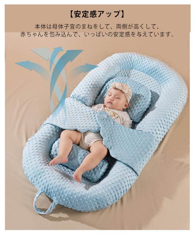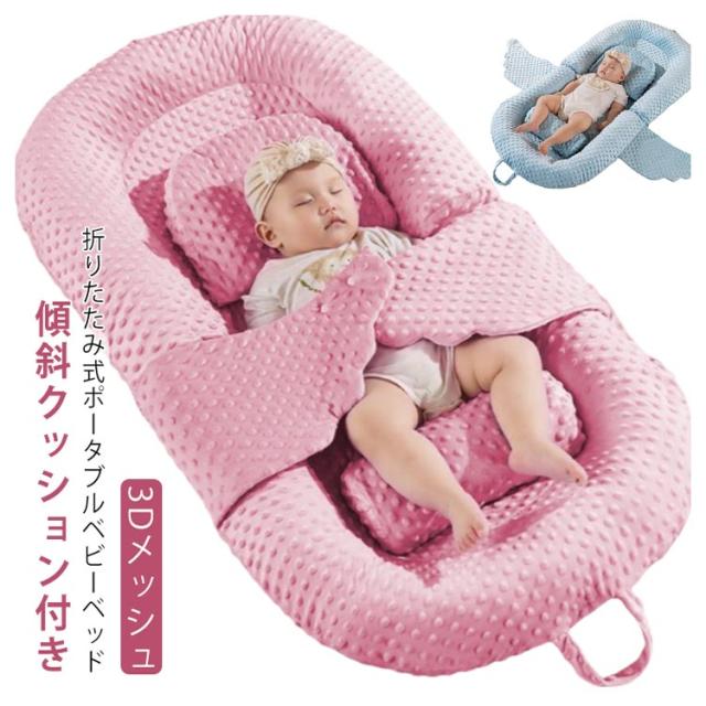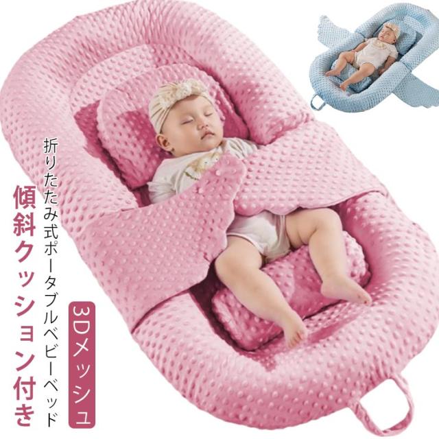 新生児 ベッドインベッド マット 持ち運び ベビー 赤ちゃん 簡易ベッド モロー反射 折りたたみ 寝返り防止 ベビーベッド ひっかき防止 クーファン 3Dメッシュ 軽量 リバーシブル ポータブル 収納バッグ付き 洗濯可 通気性 100%綿 枕付き 傾斜クッション付き 添い寝