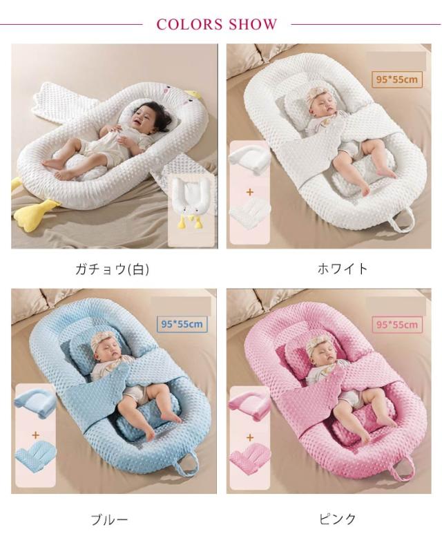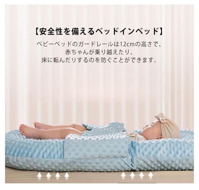 | 折りたたみ式ポータブルベビーベッド。【3Dメッシュ】【傾斜クッション付き】【モロー反射ベルト付き】 【リバーシブル仕様】クッションの片面はお肌に優しいやわらか生地です。もう一面は通気性が高い3Dメッシュ構造です。オールシーズン使える。 【折りたたみ式ポータブルベビーベッド】ベビーベッドは折りたたむことができ、使用しない場合は折りたたんで置けば、スペースを取りません。 【安全性を備えるベッドインベッド】ベビーベッドのガードレールは12cmの高さで、赤ちゃんが乗り越えたり、床に転んだりするのを防ぐことができます。赤ちゃんが親と同じベッドにいても、防圧隔離効用があるので、熟睡中の親が赤ちゃんを圧迫するのも防げ、赤ちゃんと親を安心に寝付きくれます。 【吐き戻し防止】ベビー枕とクッションが付属して、赤ちゃんがお乳を飲んで寝ているとき、横寝には役たちます。横に寝ることは赤ちゃんの吐き戻しが防止できて、頭の形も調整できます。 【安定感アップ】本体は母体子宮のまねをして、両側が高くして、赤ちゃんを包み込んで、いっぱいの安定感を与えています。 【取り外せるベッド】中身のクッションを取り外してカバーが洗濯できます。 | |