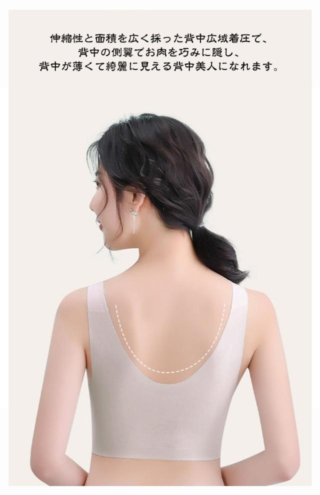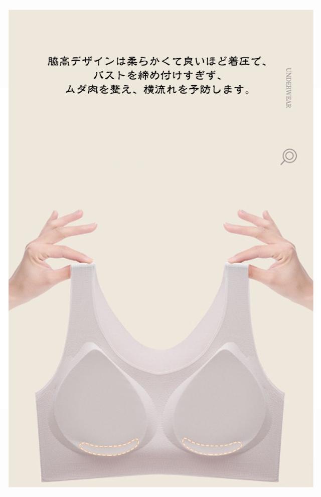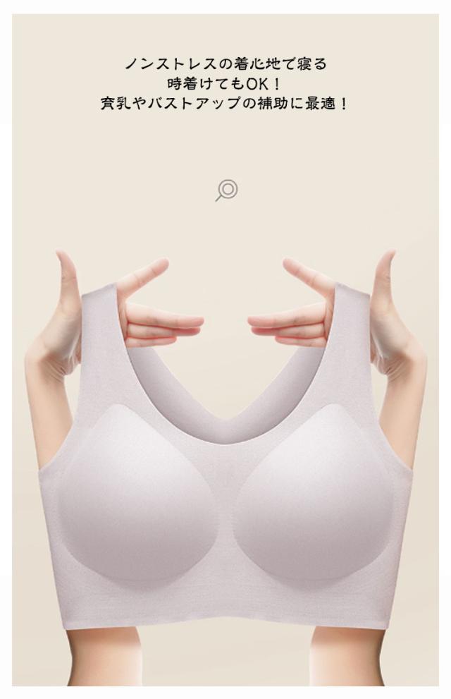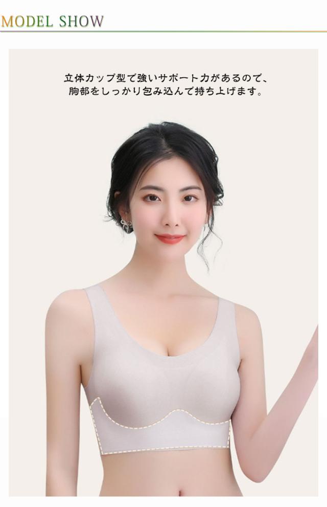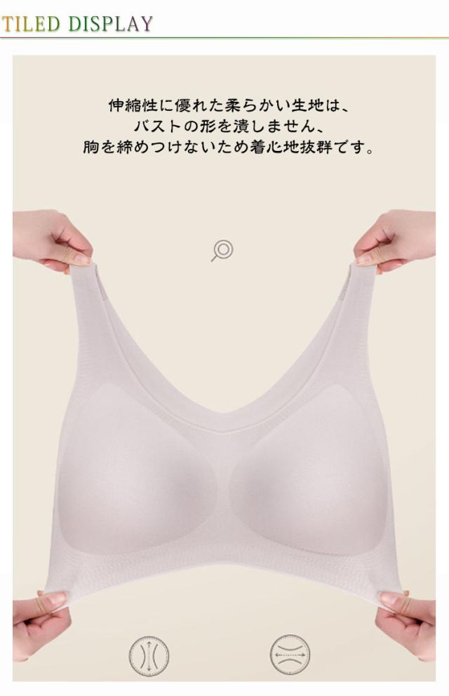 | 大きいサイズ感にも対応可能!超軽量で昼兼用のナイトブラ。 伸縮性に優れた柔らかい生地は、バストの形を潰しません、胸を締めつけないため着心地抜群です。 通気性・吸湿性に優れているノンワイヤーブラで、汗をかいてもすぐに吸収し、暑い夏でも蒸れ感ありません。 立体カップ型で強いサポート力があるので、胸部をしっかり包み込んで持ち上げます。 脇高デザインは柔らかくて良いほど着圧で、バストを締め付けすぎず、ムダ肉を整え、横流れを予防します。 伸縮性と面積を広く採った背中広域着圧で、背中の側翼でお肉を巧みに隠し、背中が薄くて綺麗に見える背中美人になれます。 ノンストレスの着心地で寝る時着けてもOK!育乳やバストアップの補助に最適! | |