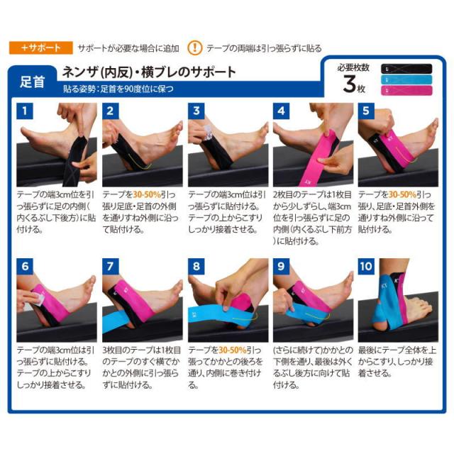 | 特徴 | 貼るだけで筋肉や関節をサポートするKT TAPE 100%合成繊維素材と独自の強粘着剤でサポート力と、 持続性の高さ、はがれにくさを実現した、 KT TAPEのハイグレードモデルです。 20枚入りプレカット(1枚当り 5×25cm) 生地の強度・耐張力が高く、長時間安定したサポート力を発揮 高い粘着力、耐水性と生地の速乾性(水・汗に強い、はがれにくい) 独自の強粘着剤とウェーブ状塗工が抜群の粘着力を維持しつつ、 肌への低刺激と通気性を確保します。 独自の100%合成繊維素材は光沢のある素材感、 スタイリッシュなルック・リフレクティブプリント(反射機能) すぐ貼れるプレカットタイプ。 ハサミ要らずそのまま使える、これ1本で全身に対応できるフリーサイズ。 野球 サッカー バスケットボール バレー 陸上 ランニング ジョギング 柔道 剣道 格闘技 ラグビー 水泳 フットサル 卓球 ソフトボール テニス ダンス ホッケー 筋トレ ゴルフ など、あらゆるスポーツに対応できます。 |
