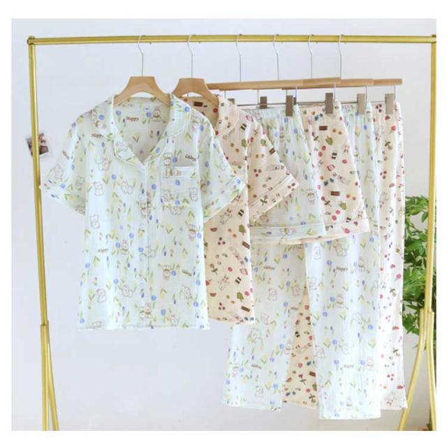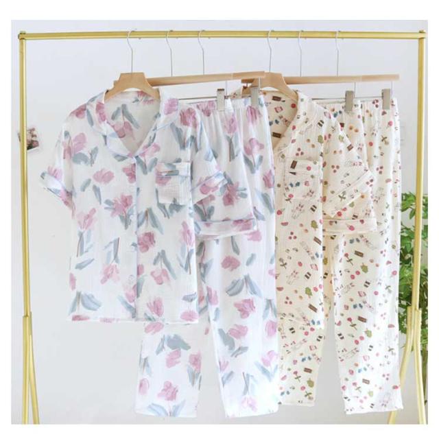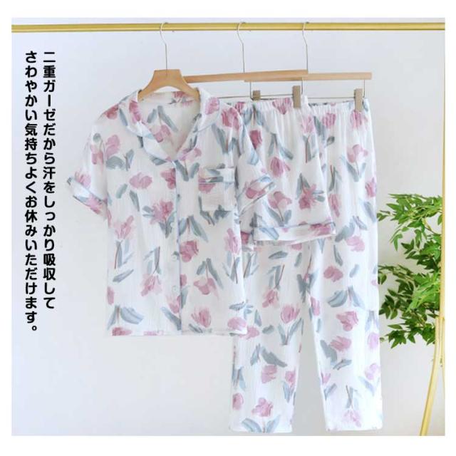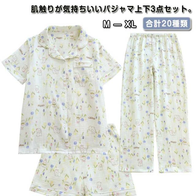 春 レディース ガーゼパジャマ ルームウエア セットアップ 3点セット 前開き 上下セット 二重ガーゼ 綿100% ナイトウエア 部屋着 ショートパンツ 春 夏 長ズボン 敏感肌 婦人服 涼しい ダブルガーゼ
