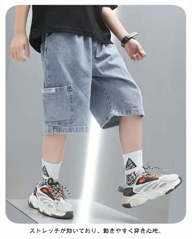 ゆったり ショートパンツ 子供服 デニム キッズ ジーンズ デニム 短パン ハーフパンツ Gパン 夏物 半ズボン ウエストゴム 男の子 ジュニア ボトムス カジュアル 韓国風 ダンス 幼稚園 小学生 中学生