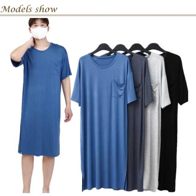 パジャマ モダール メンズ ワンピース ストレッチ 半袖 大きサイズ 紳士 男性 部屋着 伸縮性 ネグリジェ パジャマ リラックス 在宅着 寝巻き おしゃれ ギフト ゆったり 夏