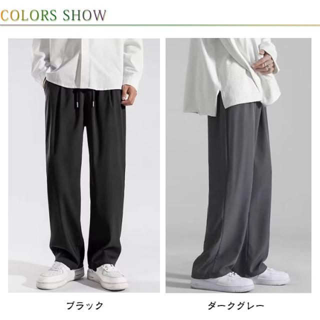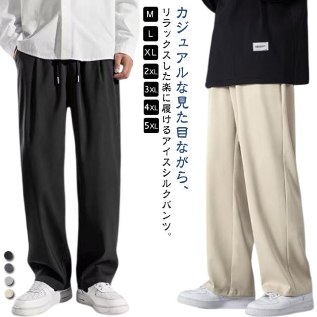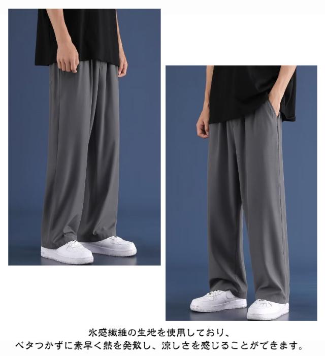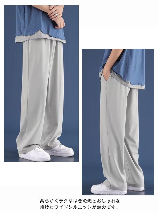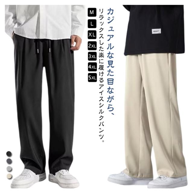 ストリートパンツ 大きいサイズ 薄手 アイスシルクパンツ ボトムス 長ズボン 接触冷感 ワイドパンツ 涼しい 夏服 ワイドパンツ イージーパンツ スポーツ 部屋着 吸水速乾 調整紐 カジュアル ゆったり 無地 シンプル 送料無料