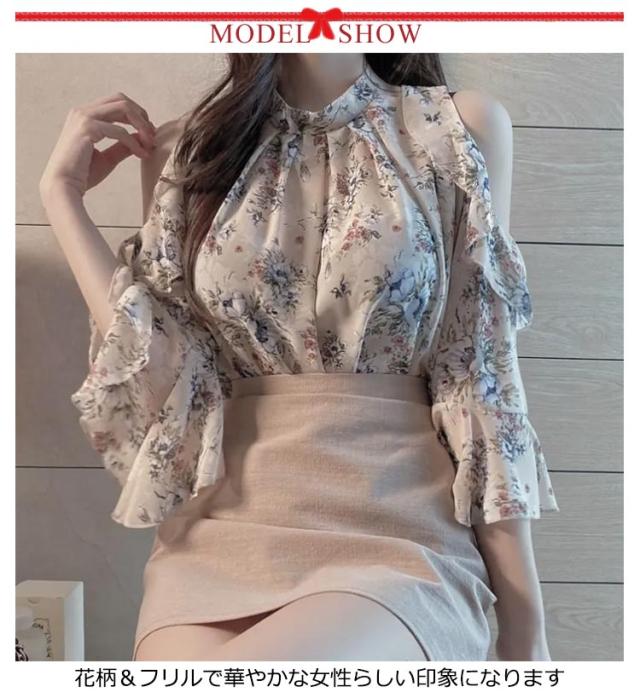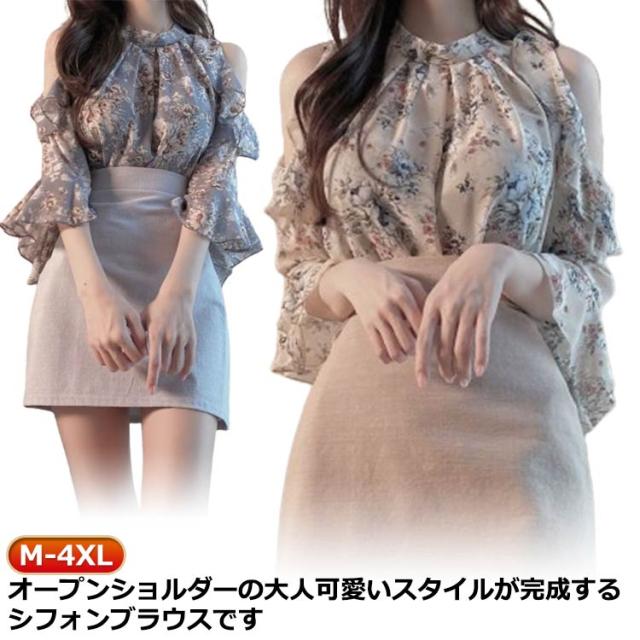 | M-4XL!オープンショルダーの大人可愛いスタイルが完成するシフォンブラウスです 花柄&フリルで華やかな女性らしい印象になります コーディネート次第でビジネスシーンからカジュアルシーン、パーティーまでカバー 襟周りや肩が見えるデザインで女性らしく可愛いデザイン。 シフォン素材でふんわり大人可愛い着こなし。 ミセスからOLまた、30代 40代 50代に大人気です。 | |