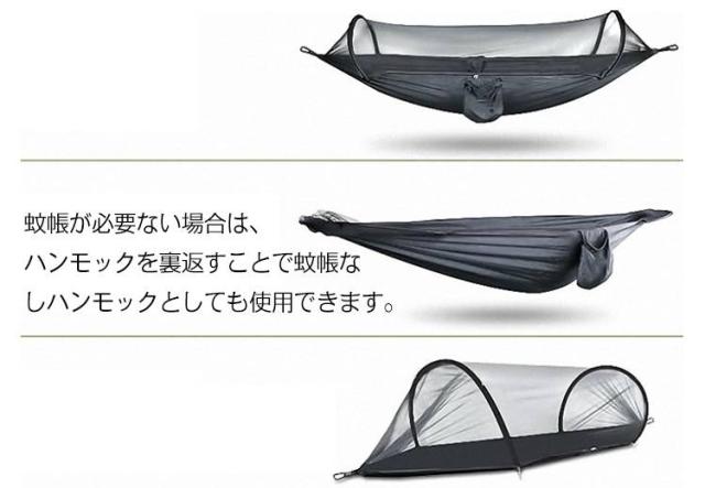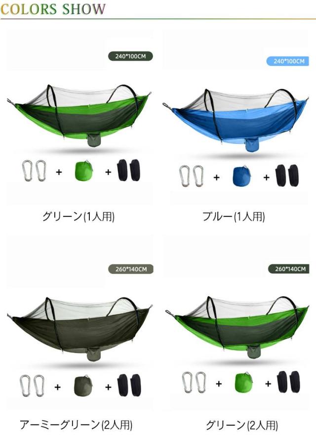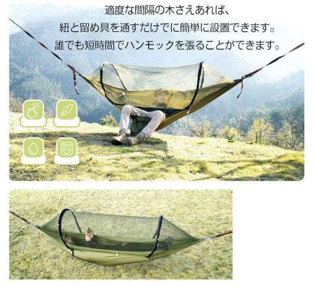 アウトドア 折りたたみ ワンタッチ 1人用 ハンモック キャンプ 一体型 蚊帳付き モスキートネット コンパクト ハンモック 2人用 ソロキャンプ