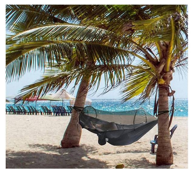 | ・嫌な蚊や虫を寄せ付けない蚊帳付! ・防蚊・通気性に優れた高密度ネットの蚊帳付きハンモックです。 ・蚊帳と一体型で屋外での不快な蚊をシャットアウト! ・ケースから出すと自動的にポップアップ式の蚊帳は手間いらず! ・適度な間隔の木さえあれば、紐と留め具を通すだけでに簡単に設置できます。誰でも短時間でハンモックを張ることができます。 ・蚊帳が必要ない場合は、ハンモックを裏返すことで蚊帳なしハンモックとしても使用できます。 ・通気性・速乾性に優れた生地を採用し、山だけでなく海でも快適に使用できますよ。 ・コンパクトな収納で、持ち運び便利です。 | |