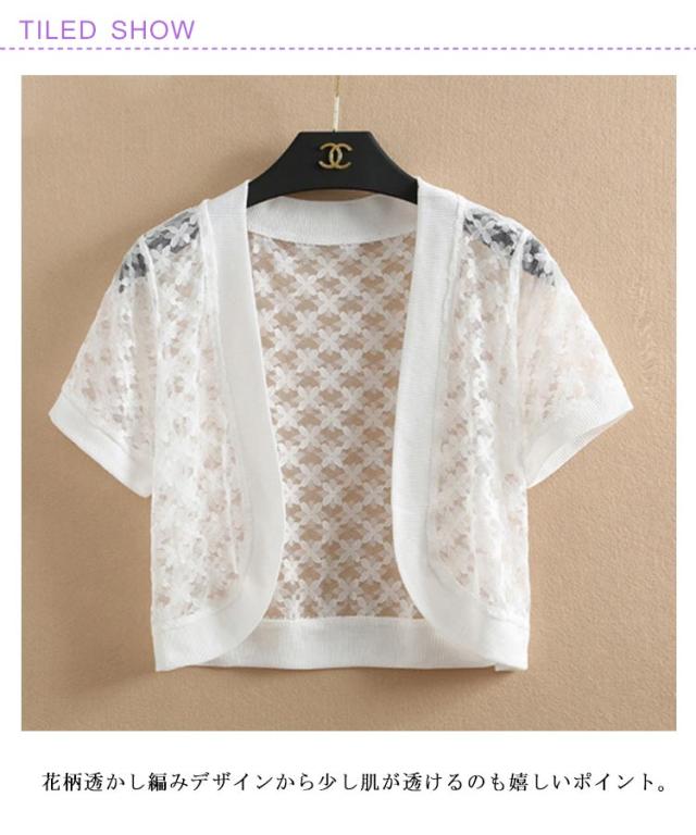 薄手 ボレロ 花柄 サマーニット サマー 透け サマー 半袖 冷房対策 通勤 カーディガン 羽織り 半袖カーディガン ニットカーディガン ニットボレロ カーディガン 細見え トップス 透かし編み カジュアル 体型カバー M L XL 2XL 3XL 4XL
