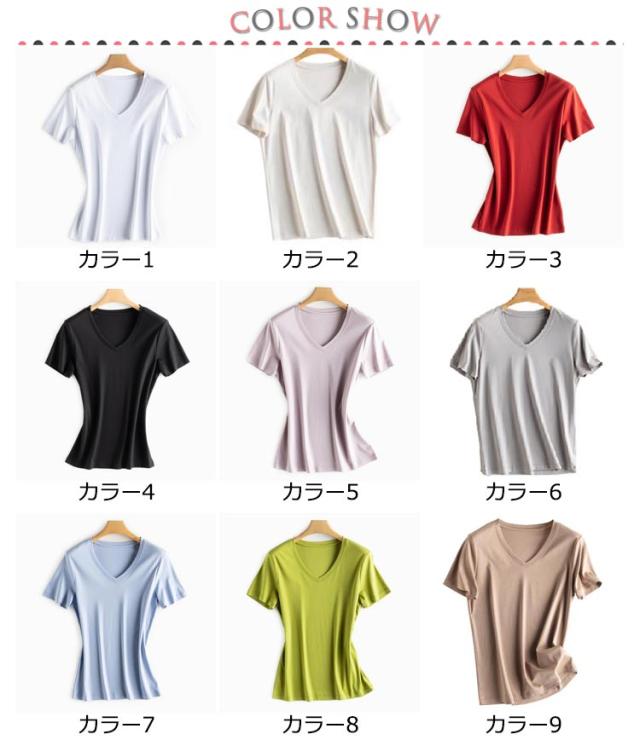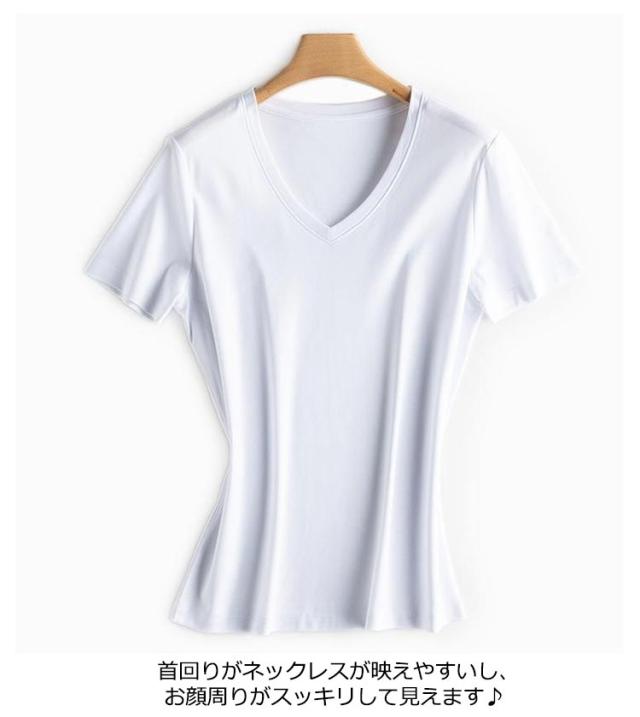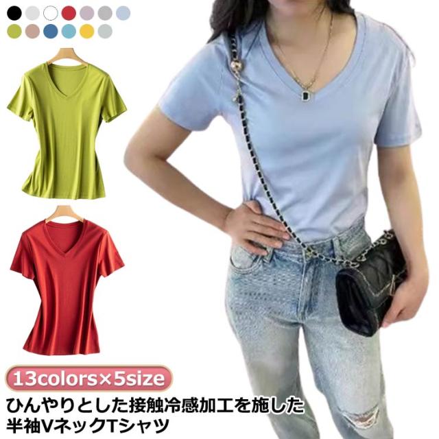 vネック 【送料無料】ひんやり tシャツ レディース 接触冷感 半袖 涼しい 半袖 レディース Tシャツ 【送料無料】ひんやり 冷感Tシャツ シルク ラウンドネック Uネック 半袖Tシャツ 無地 ストレッチ 伸縮性 トップス プルオーバー 薄手