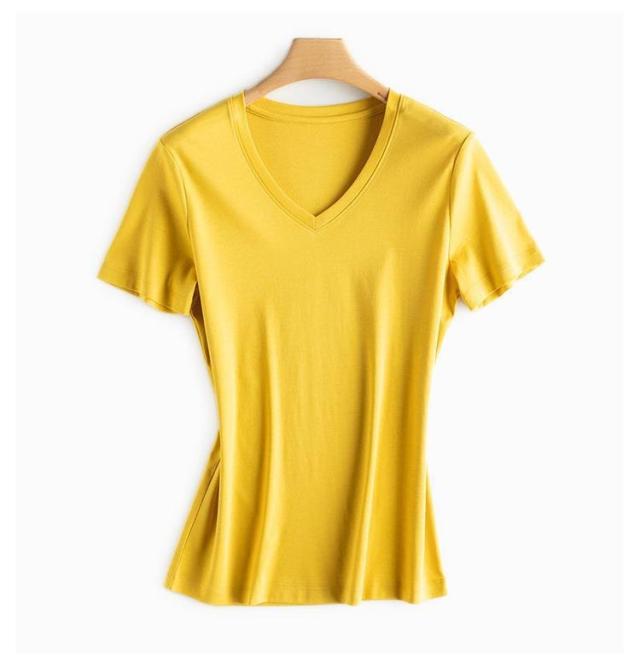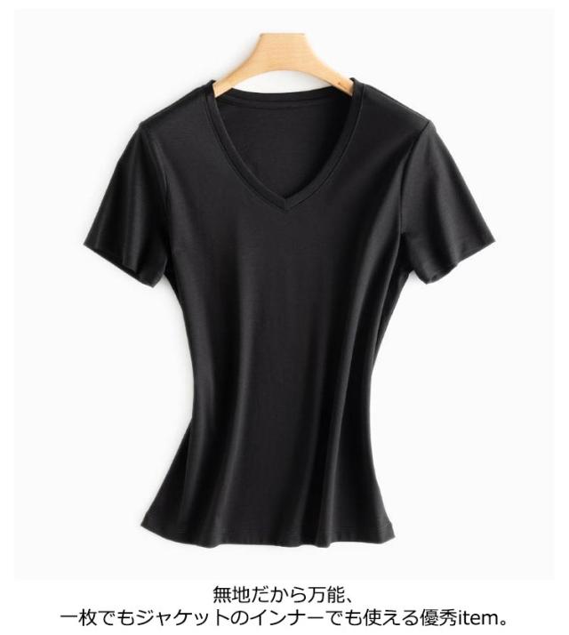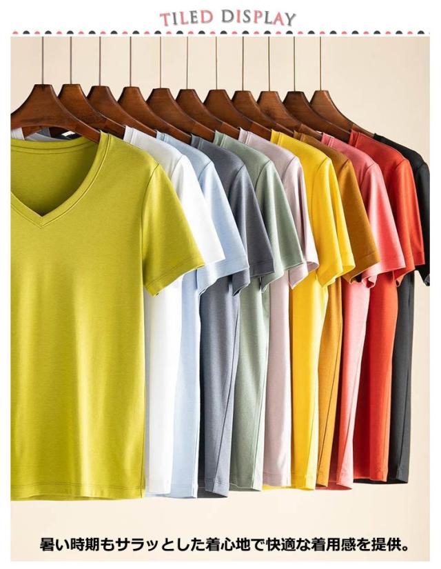 | 13colors×5size ひんやりとした接触冷感加工を施した半袖vネックTシャツ。 暑い時期もサラッとした着心地で快適な着用感を提供。 首回りがネックレスが映えやすいし、お顔周りがスッキリして見えます♪ 二の腕が気にならない程よい袖丈になっていて、 定番デザインなので幅広いコーディネートと相性バツグンです。 豊富なカラーバリエーション展開も魅力。 無地だから万能、一枚でもジャケットのインナーでも使える優秀item。 | |