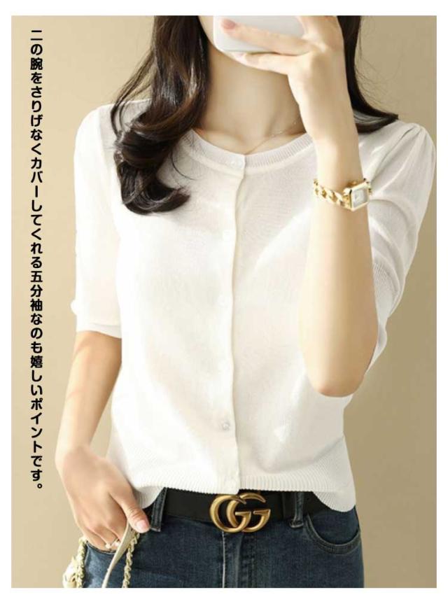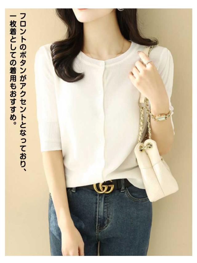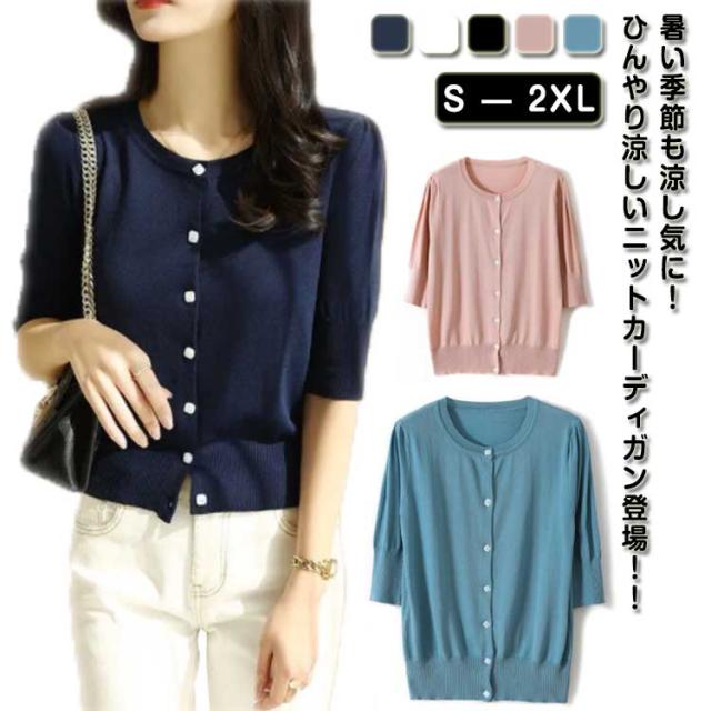 夏 半袖カーディガン カーディガン 春 カーディガン 羽織り 接触冷感 レディース トップス ニット 薄手 サマーニット 通勤 オフィス カジュアル 涼しい 無地 シンプル