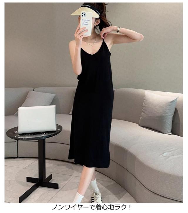 インナー カップ付き 全10色 インナーキャミワンピース 4サイズ レディース ルームウェア キャミソールワンピース キャミワンピ インナー ノンワイヤー カップ付き キャミソール ブラトップインナー インナー ロング キャミワンピ