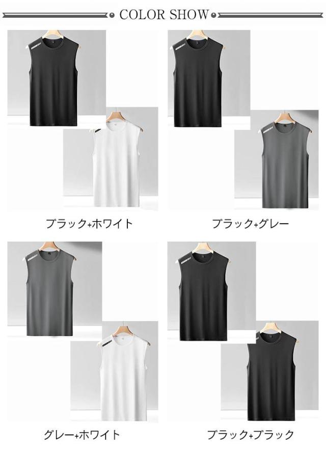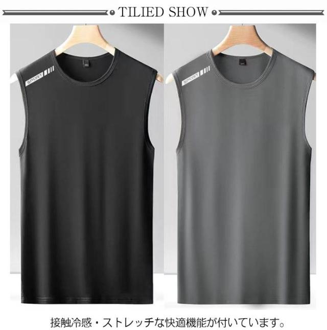 伸縮性 タンクトップ メンズ ノースリーブ tシャツ 接触冷感 ストレッチ 男性 トップス 2枚セット ドライ メッシュ 2枚セット 吸汗 速乾 シンプル 袖なし ランニング シャツ スポーツウエア ジム