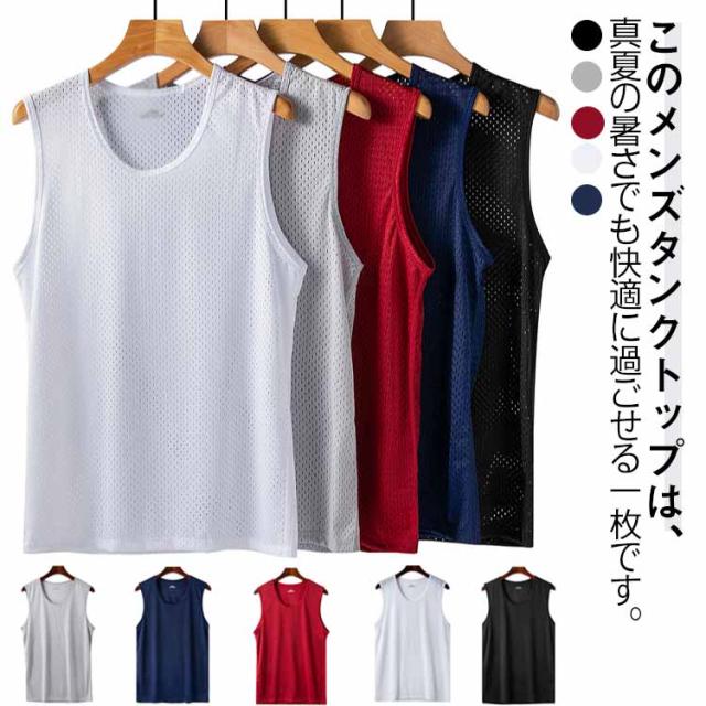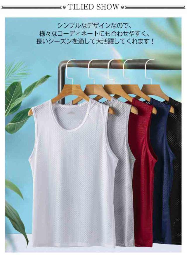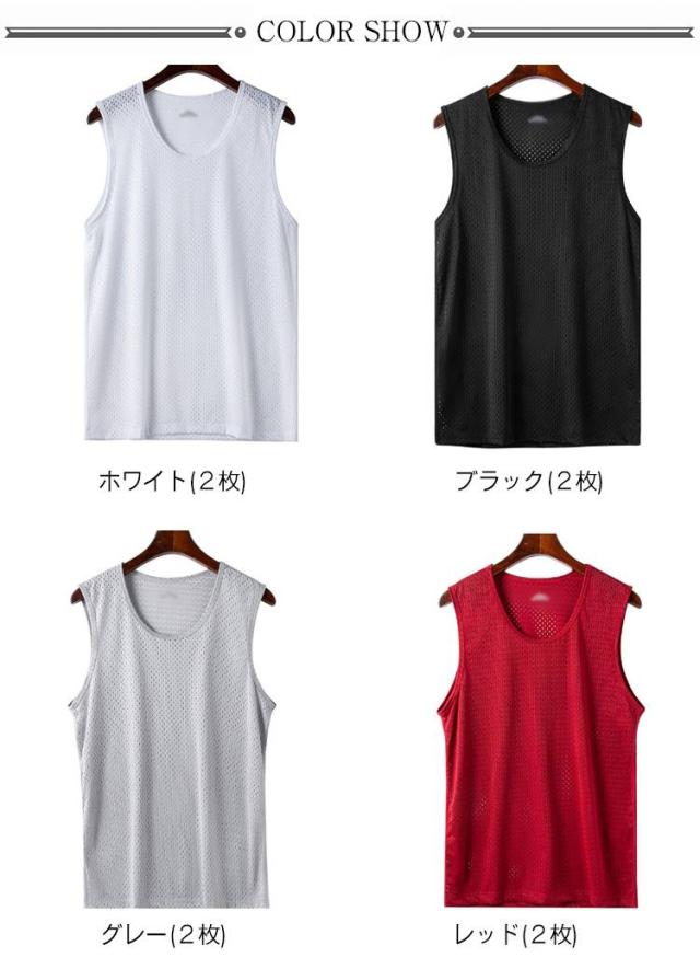 メッシュ メンズ 2枚セット インナーシャツ 2枚セット スポーツウェア 薄手 Tシャツ 通気性 ランニング 袖なし トップス 涼しい トレーニング タンクトップ ジム 運動着 フィットネス 運動会