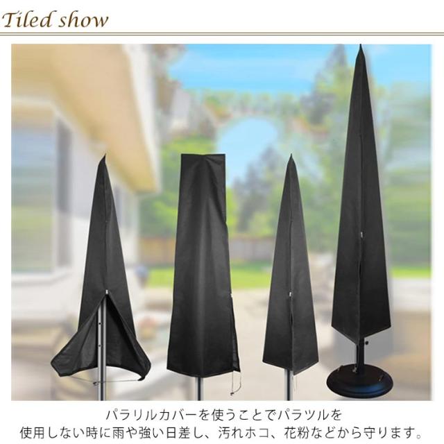 | パラリルカバーを使うことでパラツルを使用しない時に雨や強い日差し、汚れホコ、花粉などから守ります。 水洗いもできる丈夫なポリエステル生地です。カバー外側は撥水加工ですのでしっかり雨から守る! ファスナー付きで着脱しやすい。開口部にひもが付いているので、しっかり固定できます。 収納袋も付きますので使わない時にコンパクトに収納可能。 持ち運びにもやすい。 | |