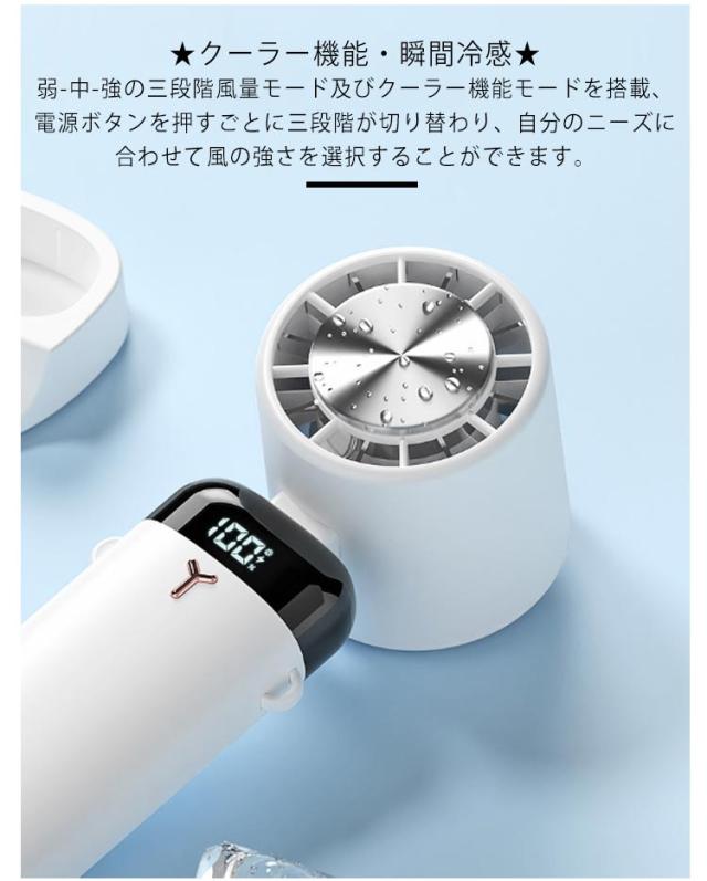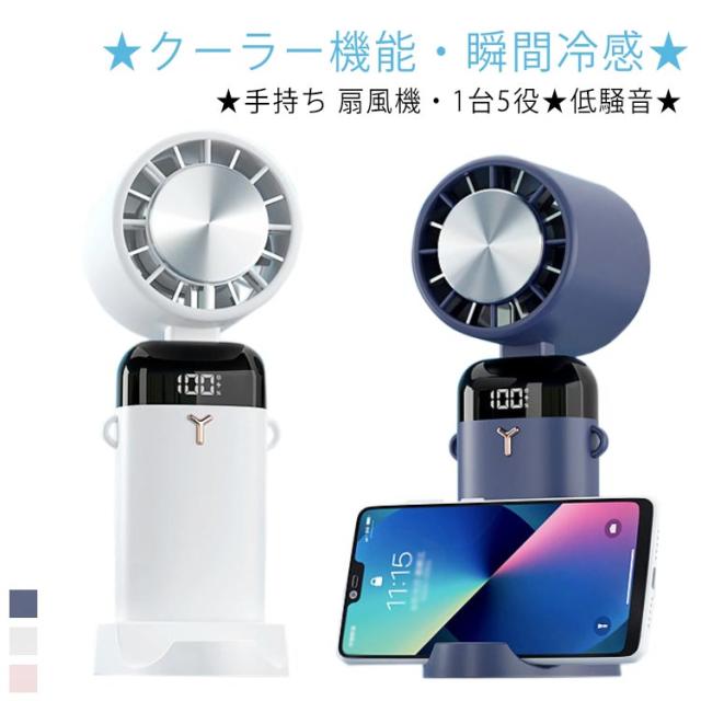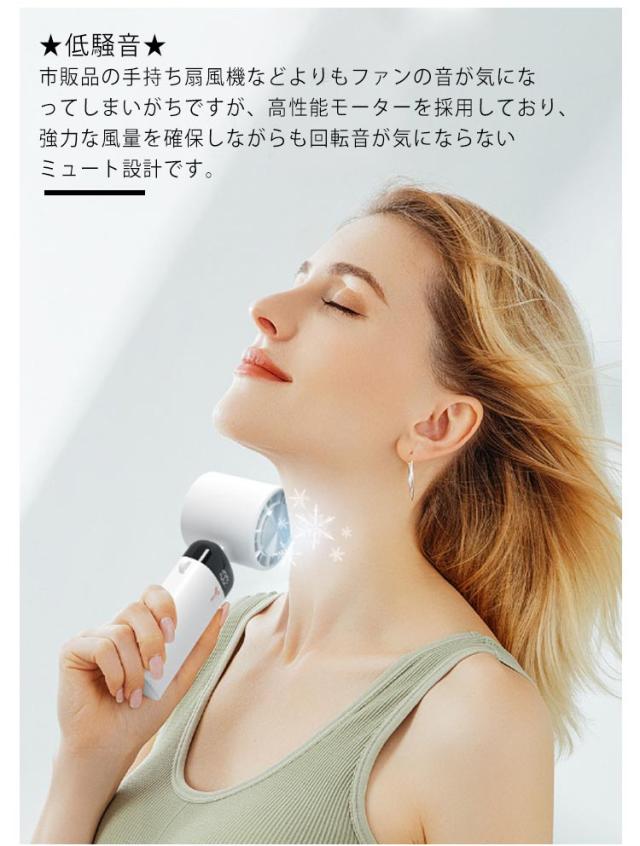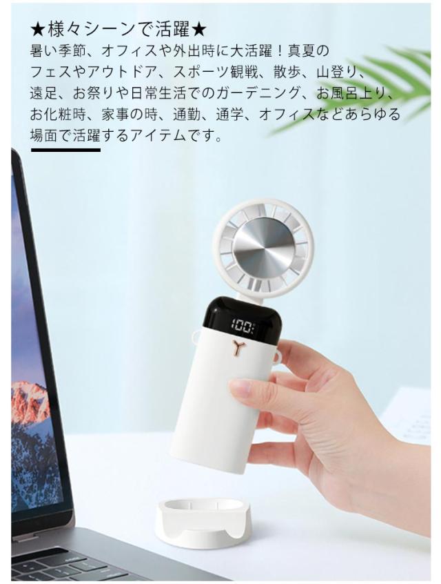 | ★手持ち 扇風機・1台5役★ 暑い夏を快適に愉しむための定番アイテム、ハンディファン。気軽に手軽に、風を持ち歩こう。 ★クーラー機能・瞬間冷感★ 弱-中-強の三段階風量モード及びクーラー機能モードを搭載、電源ボタンを押すごとに三段階が切り替わり、自分のニーズに合わせて風の強さを選択することができます。 ★低騒音★ 市販品の手持ち扇風機などよりもファンの音が気になってしまいがちですが、高性能モーターを採用しており、強力な風量を確保しながらも回転音が気にならないミュート設計です。 ★様々シーンで活躍★ 暑い季節、オフィスや外出時に大活躍!真夏のフェスやアウトドア、スポーツ観戦、散歩、山登り、遠足、お祭りや日常生活でのガーデニング、お風呂上り、お化粧時、家事の時、通勤、通学、オフィスなどあらゆる場面で活躍するアイテムです。 | |