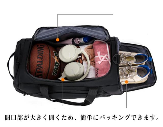 | ・たっぷりの収納力のリュックとしても使えるボストンバッグが新登場。 ・背負い、手持ち、肩掛けの3WAYで使用することができるため、あらゆるシーンで快適に持ち運ぶことができます。 ・開口部が大きく開くため、簡単にパッキングできます。 ・また、側面にはシューズなどを分けてしまえるポケットを装備。スポーツシーンに最適な仕様となっています。 ・中学生、高校生の部活やスポーツバッグ、旅行バッグとしてもおすすめです! | |