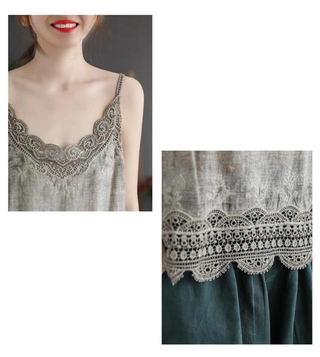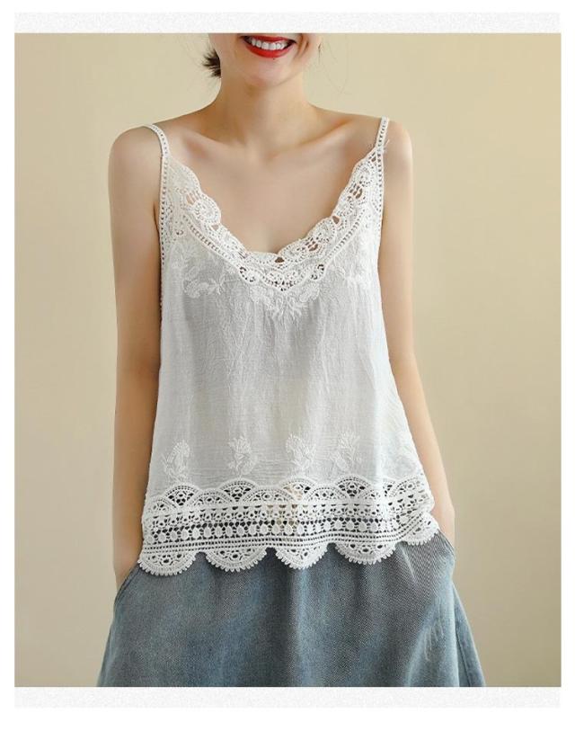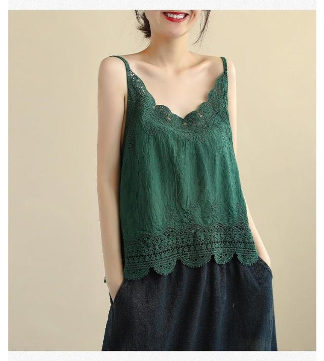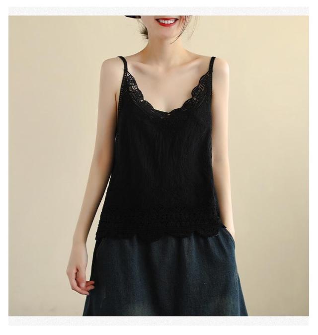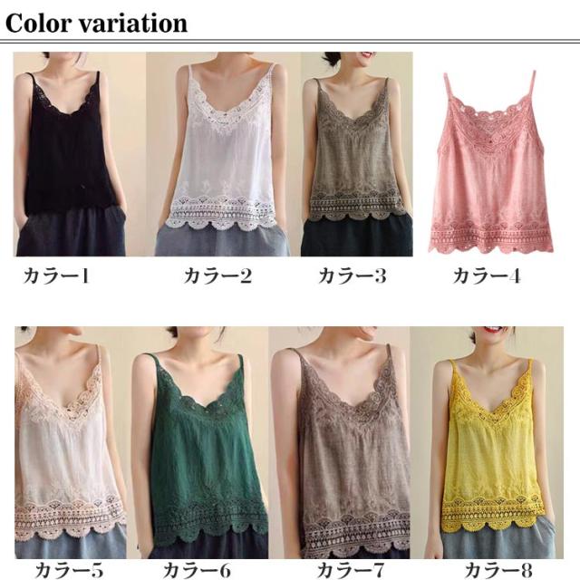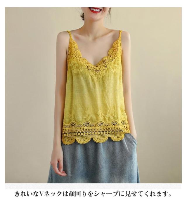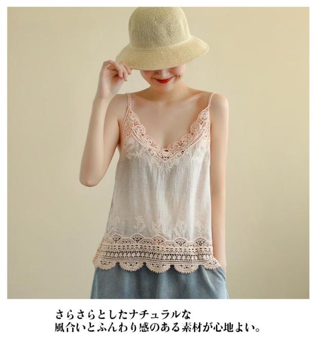 おしゃれ キャミ レース 深Vネック 重ね着 透かし編み トップス 送料無料 ノースリーブ インナー 夏 春夏 ナチュラル レイヤード 送料無料 カジュアル 森ガール