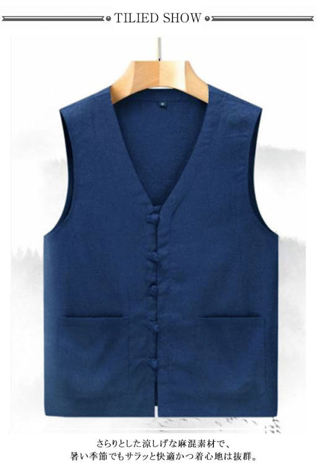 麻 ベスト メンズ ジレ サマーベスト 前開き リラックス 薄手 Vネック 紳士 おしゃれ 麻 春夏 リネンベスト メンズベスト カジュアル 清涼感 無地 シンプル ビジネス カジュアル 父の日 ギフト プレゼント 敬老の日 秋 通勤 実用的 大きいサイズ レイヤード