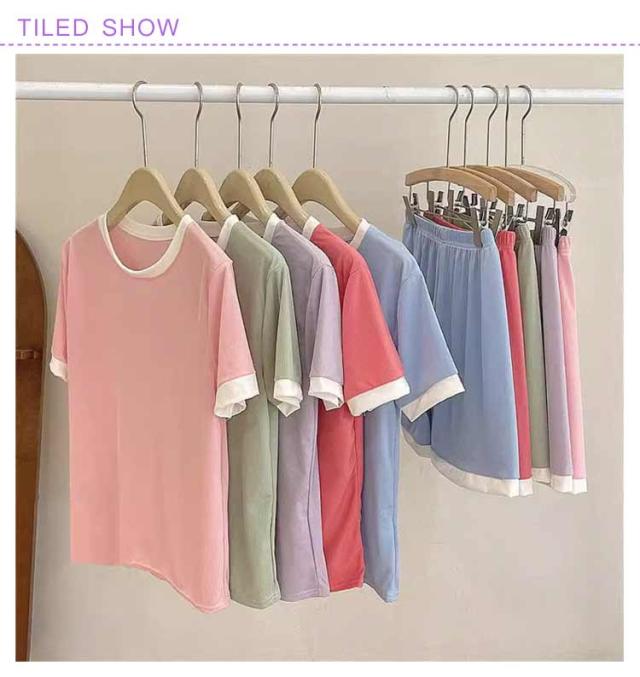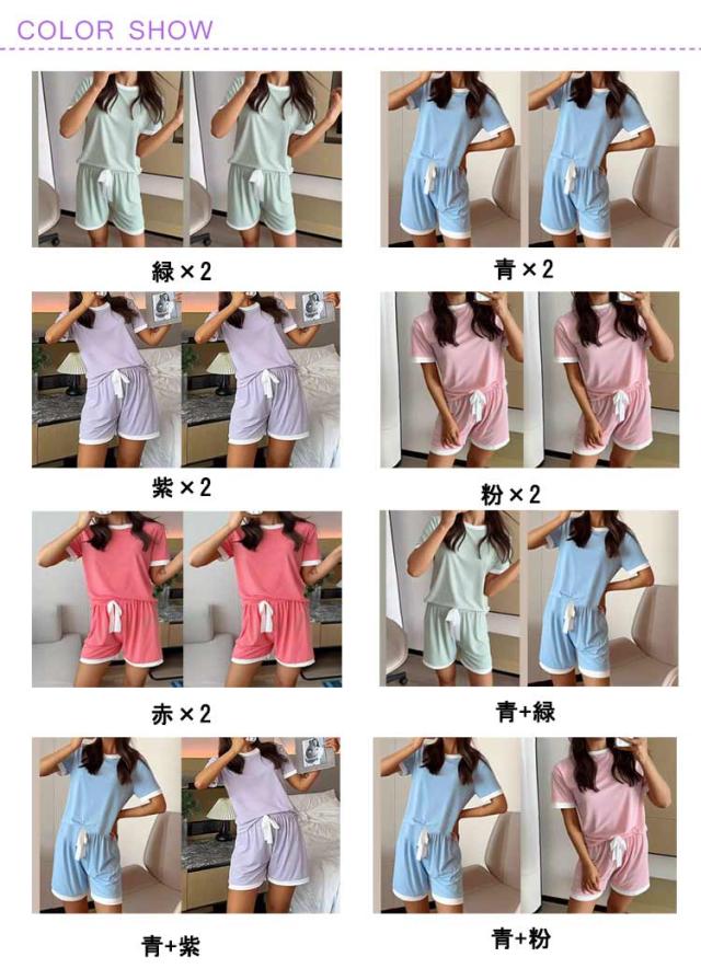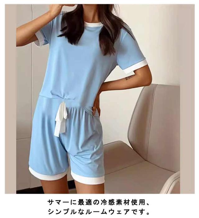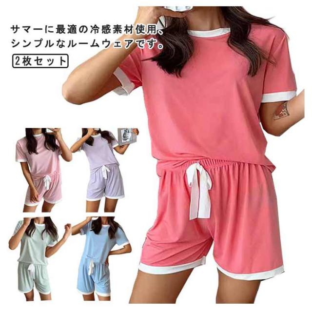 冷感ルームウェア 2組 tシャツ 冷感 アイスシルク ルームウェア パジャマ セットアップ 薄手 夏用 ショートパンツ 半袖 接触冷感 冷感パジャマ 寝間着 上下セット 婦人用 涼しい 部屋着 ナイトウエア 2組 寝巻