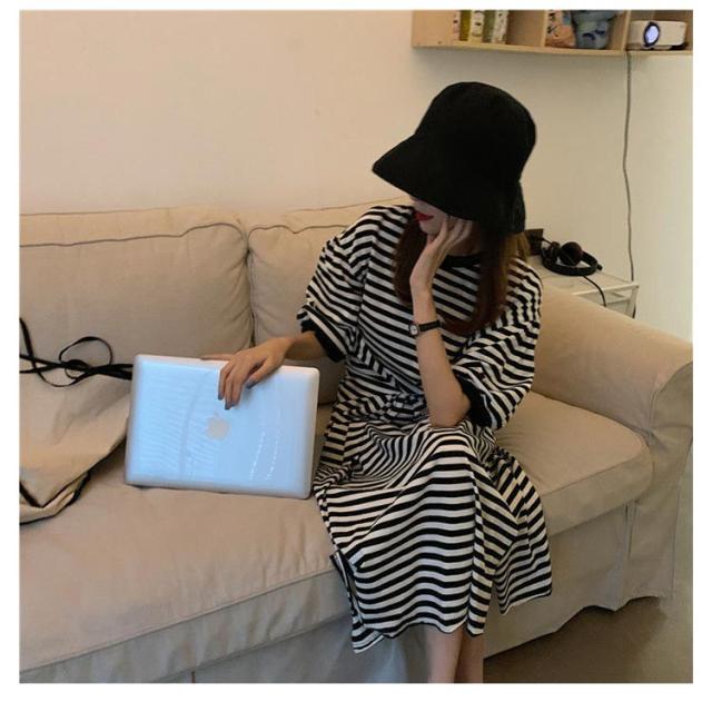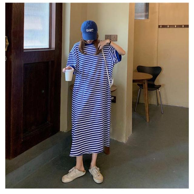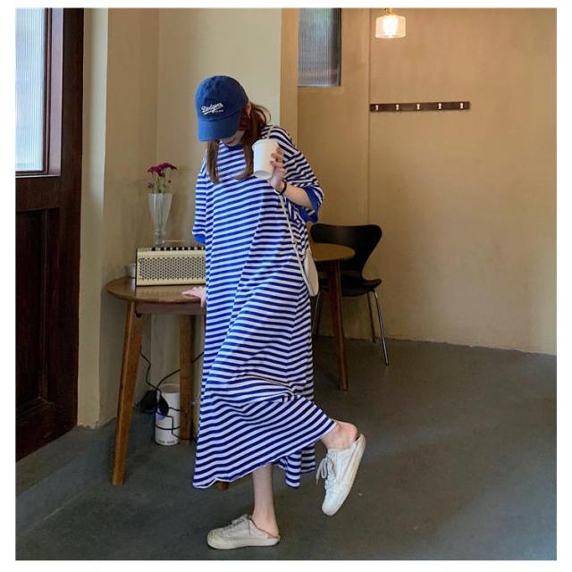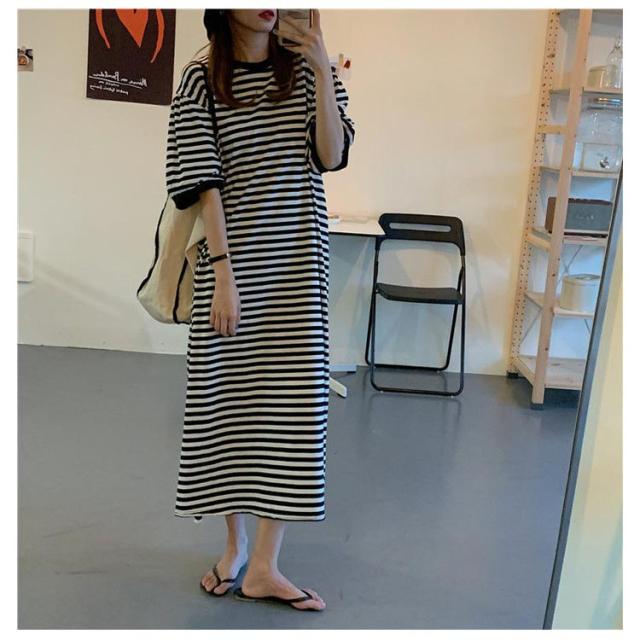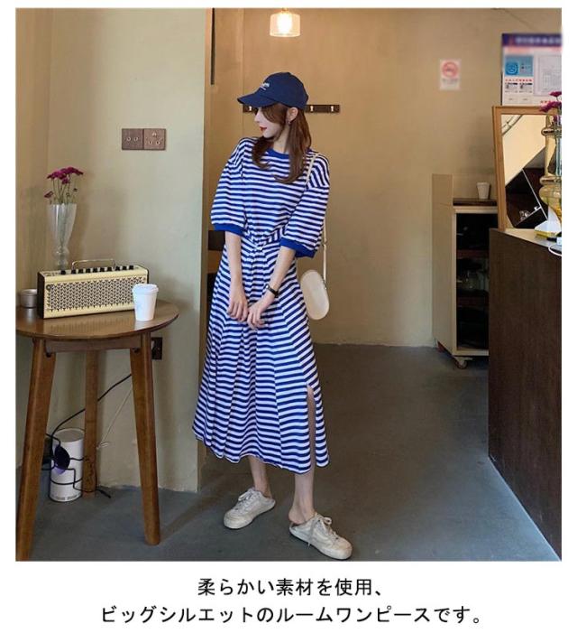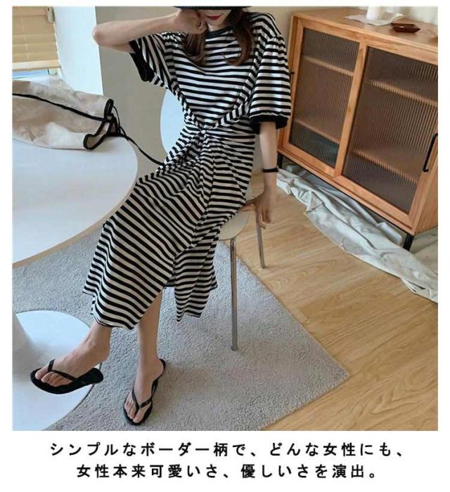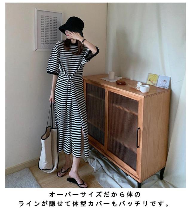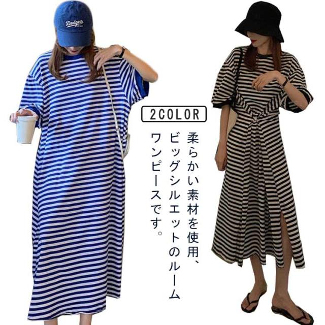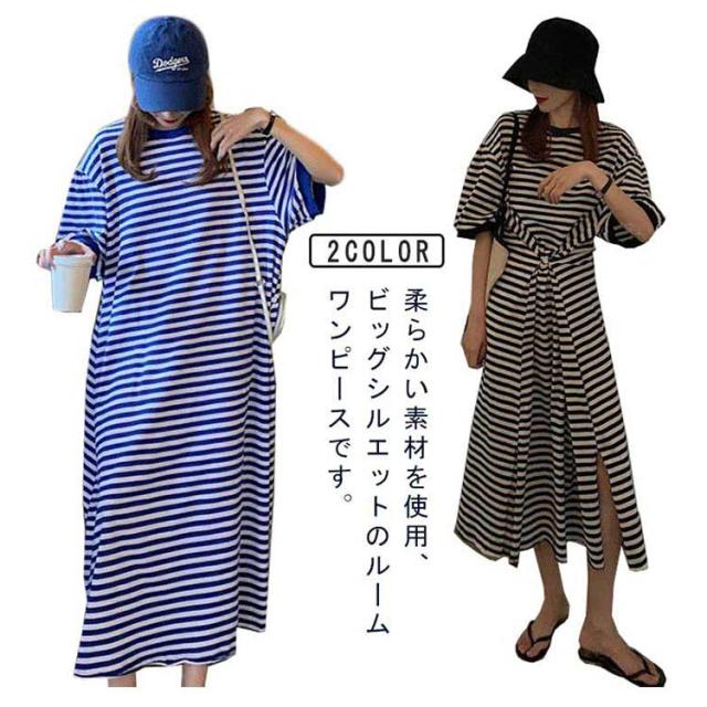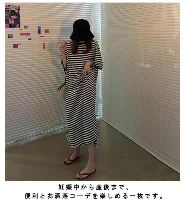 半袖 ルームウェア ビッグシルエット マタニティ レディース 部屋着 パジャマ Tシャツワンピース マキシワンピース ボーダー 春 夏 ワンピース 入院 パジャマ 可愛い 産後 ナイトウェア ビッグシルエット M L XL