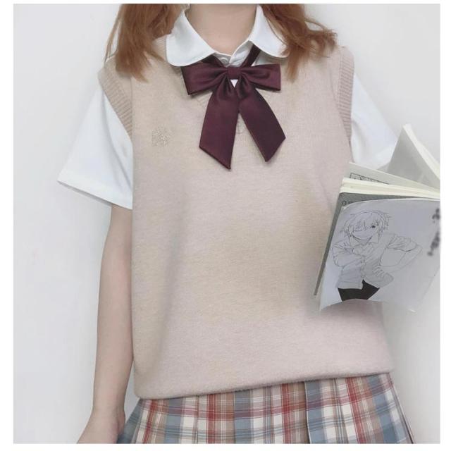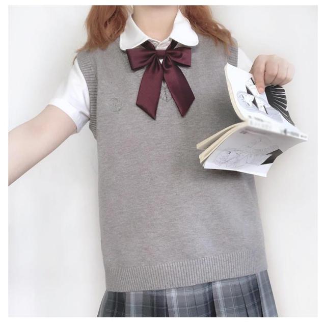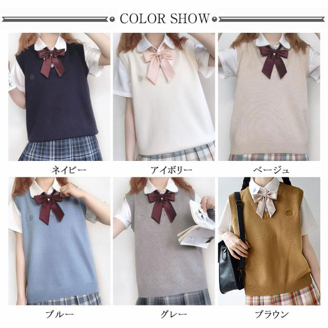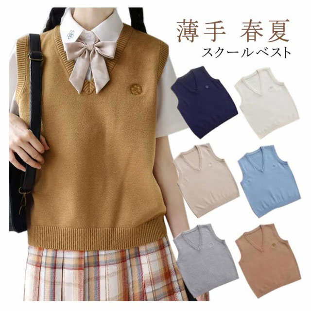 制服 薄手 制服 夏 ニットベスト 学校 スクールベスト 通学 ベスト 学生 学生服 Vネック 人気 女子高生 JK 中学 刺繍 通学 ニット スクール シンプル 夏用 かわいい 白 ベージュ グレー 大きい 小さい