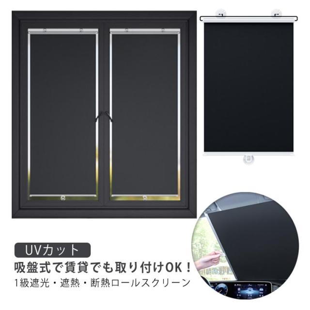 吸盤付き 断熱 ロールカーテン 賃貸OK 遮光 遮光カーテン 遮熱 UVカット 車用カーテン 真っ黒 プライバシー保護 間仕切り 日差し 西日対策 ロールスクリーン 穴あけ不要 防寒 ブラック
