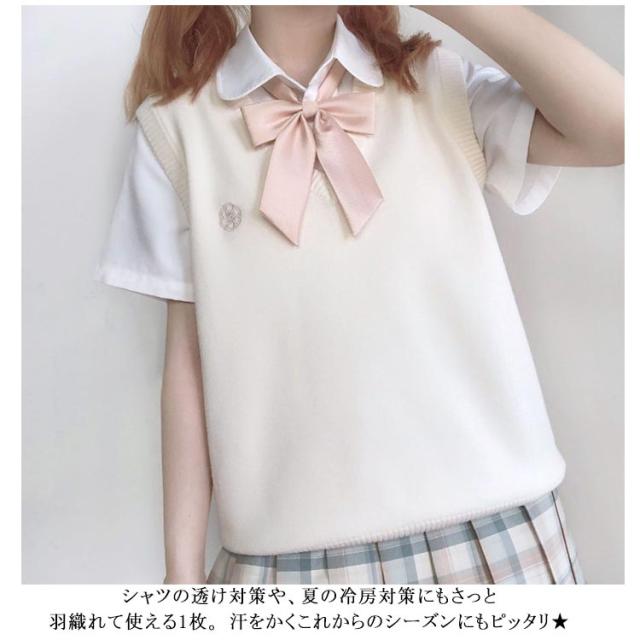 涼しい スクールベスト 夏用 夏 通学 ベスト ニットベスト 学生 通学 制服 中学 学校 薄手 学生服 JK Vネック 刺繍 女子高生 ニット スクール シンプル 人気 かわいい 白 ベージュ グレー 大きい 小さい