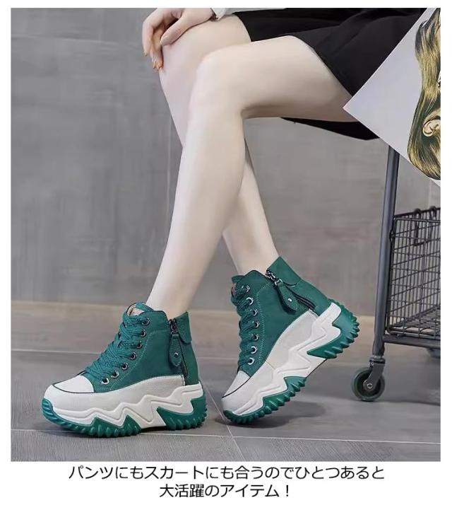 シューズ おしゃれ スニーカー 厚底スニーカー 滑り止め 厚底靴 厚底スニーカー 7cmヒール レディース靴 身長アップ カジュアル 厚底 女性 耐摩耗 通気性抜群 ハイカット 美脚 通学 黒