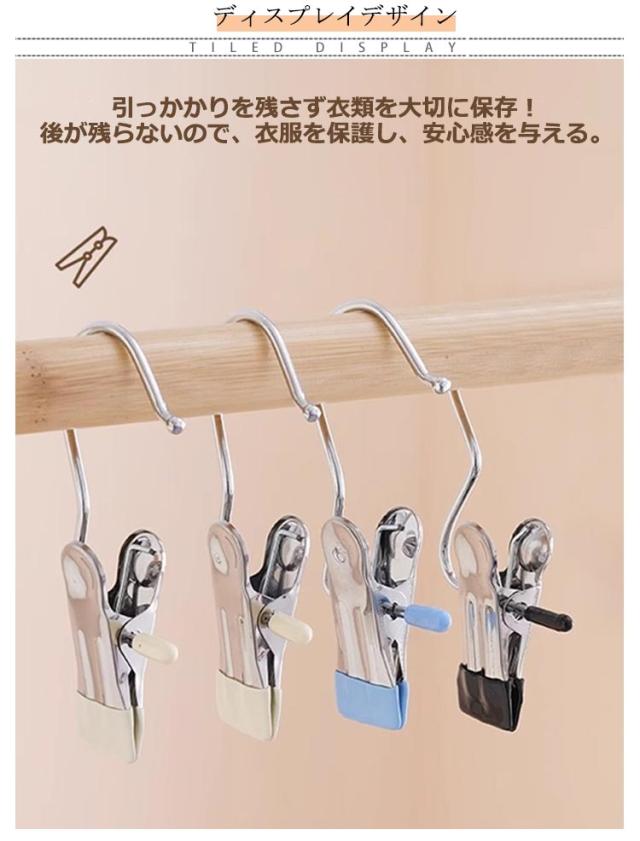ステンレス 小物ハンガー ステンレス製 クリップ 洗濯バサミ 強力 クリップフック ハンガー パワー フッククリップ 大口サイズ 洗濯 竿ばさみ 固定 スカートクリップ 20個セット 引掛ける 吊り下げ すべらないハンガー 洗濯用品