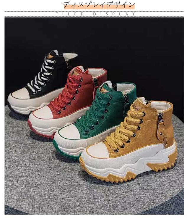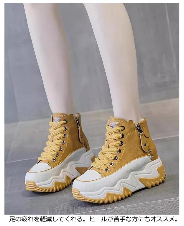 スニーカー 7cmヒール レディース 厚底靴 厚底 シューズ レディース靴 カジュアル 身長アップ ハイカット 厚底スニーカー おしゃれ 女性 耐摩耗 通気性抜群 滑り止め 美脚 通学 黒