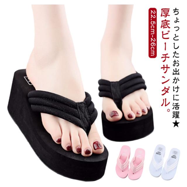 | ちょっとしたお出かけに活躍★ 厚底ビーチサンダル。レディース用 お洒落なサンダル。海やプールに出かけた時にオススメ! 熱い砂浜やプールサイドなどを歩く時の必需品です♪ お洒落かつシンプルな仕上がりになっておりますのでファッションとして普段履きとしても十分に使えます☆ 厚底で美脚になれて、ビーチでも普段使いでも活躍してくれるITEMです!シンプルなデザインなので海やプールに行くときにはもちろん、デートから普段使いまで、幅広く活躍してくれて浴衣にだって違和感なく履けちゃいます! | |