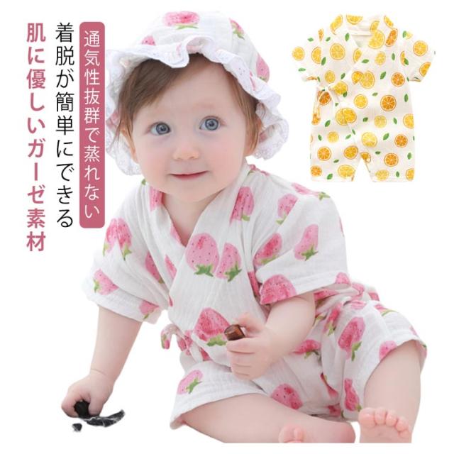 ベビー 一歳 半袖 男の子 カバーオール ベビー 浴衣 ベビー服 パジャマ プレゼント ロンパース 前開き 綿 ガーゼ 夏 赤ちゃん 可愛い かわいい おしゃれ 甚平 夏祭り 花火大会 出産祝い 女の子 お出かけ 旅行 温泉