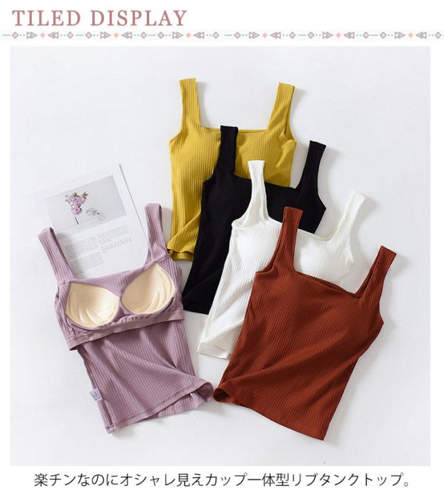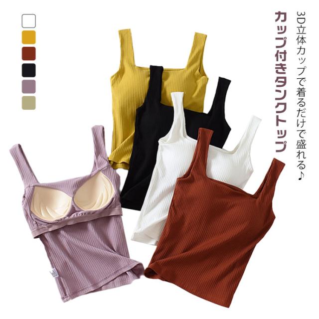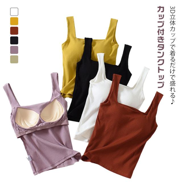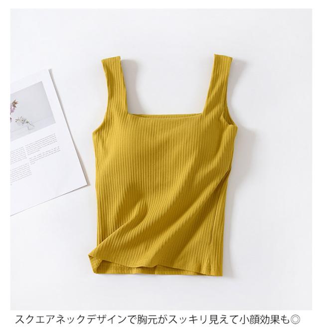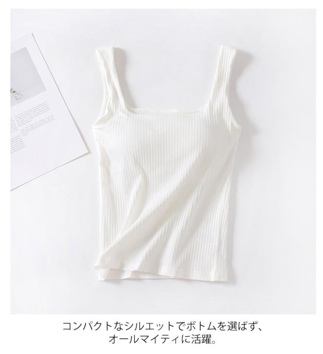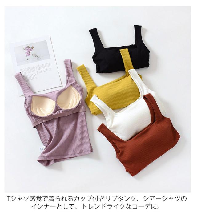 ブラタンクトップ キャミソール カップ付き トップス 部屋着 リブ レディース カップ付きタンクトップ リブタンク 綿 コットン カップ付きインナー 夏 スクエアネック ノンワイヤー 下着 ノースリーブ トップス ルームウェア カップ付きタンクトップ パジャマ