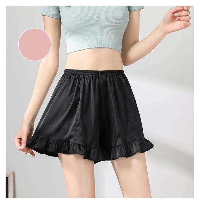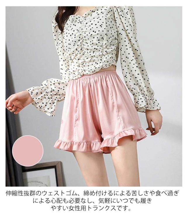 フリルが可愛い アンダーウェア インナー ペチパンツ 短パン ペチコート 下着 フリルが可愛い ショートパンツ レディース ルームパンツ 部屋着 パジャマ サテン 兼 薄手 スカートの下に穿く パンツ 無地 送料無料