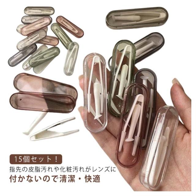 収納ケース つけはずし器具 指がレンズに触れない スティック 15個セット!コンタクトレンズ付け外し器具 コンタクトレンズ装着器具 カラーコンタクト 3点セット 15個セット!コンタクトレンズ付け外し器具 ピンセット 清潔 簡単 素早く 非接触