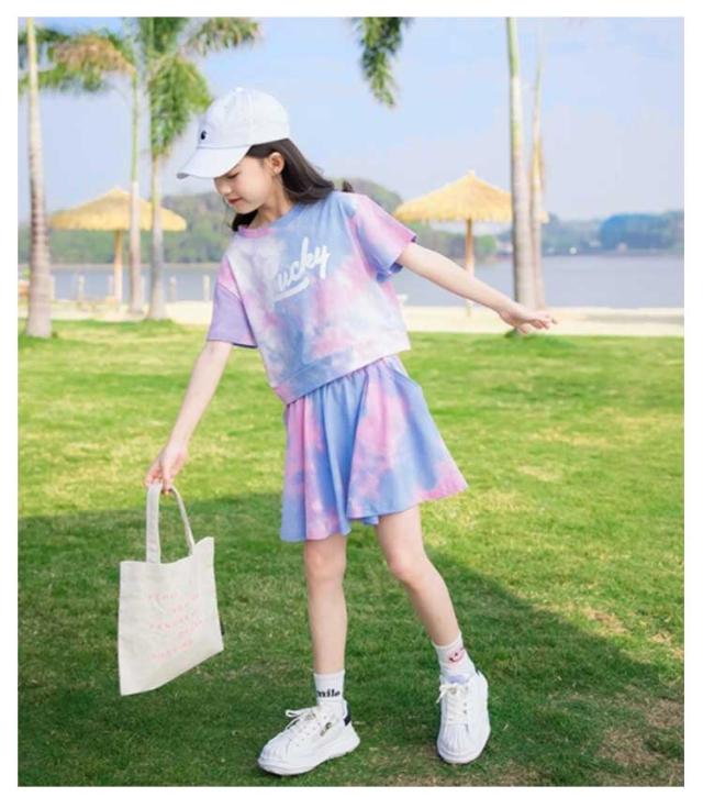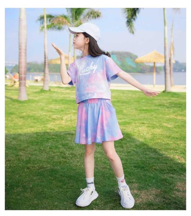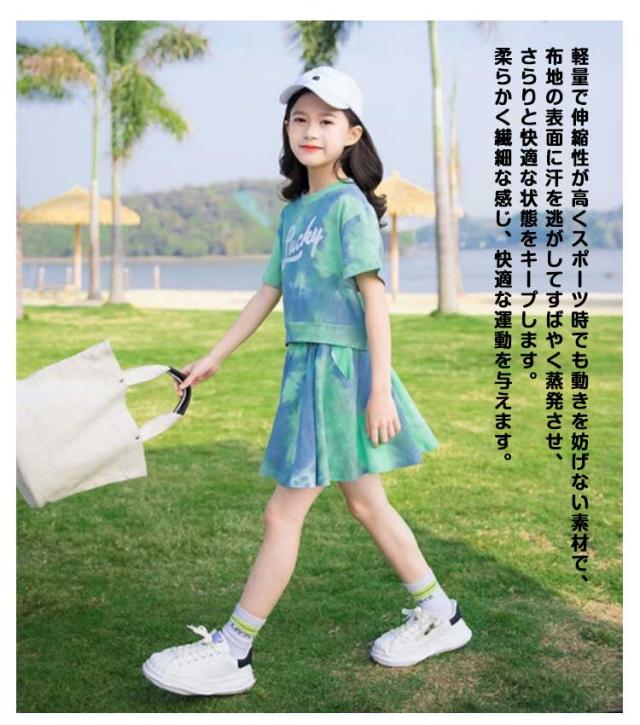 子供服 女の子 セットアップ 半袖tシャツ スカート 2点セット キッズ ジャージ 上下セット スポーツウェア ガールズ 夏服 タイダイ ダンス服 テニス 運動着 ジュニア服 ダンス衣装 ヒップホップ ジュニアスポーツウェア 通学着