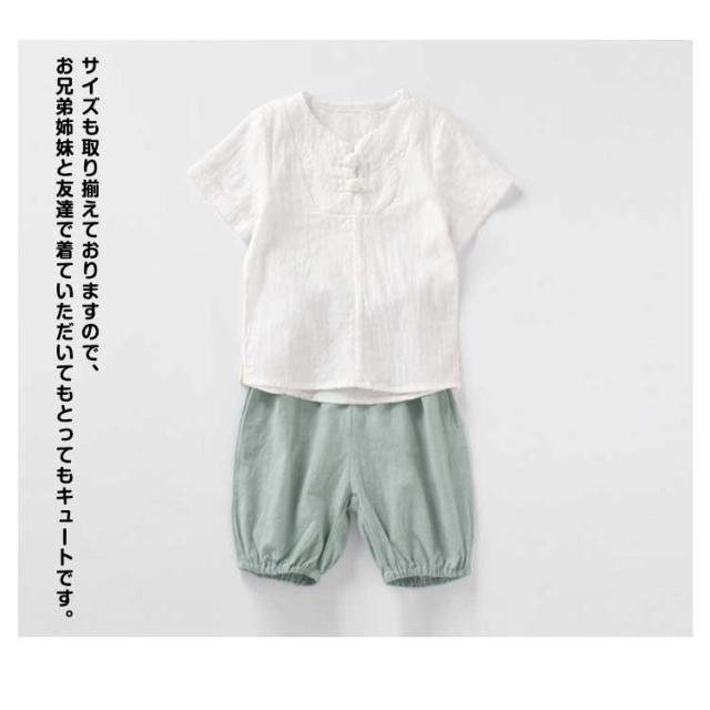 セットアップ キッズ 無地 上下セット 半袖 シャツ パンツ ショートパンツ ハーフパンツ リネン風 子ども 男の子 女の子 トップス ズボン ボトムス シンプル おしゃれ リネン 涼しい 薄手 2点セット 子供服 韓国 夏服 子供 ジュニア服