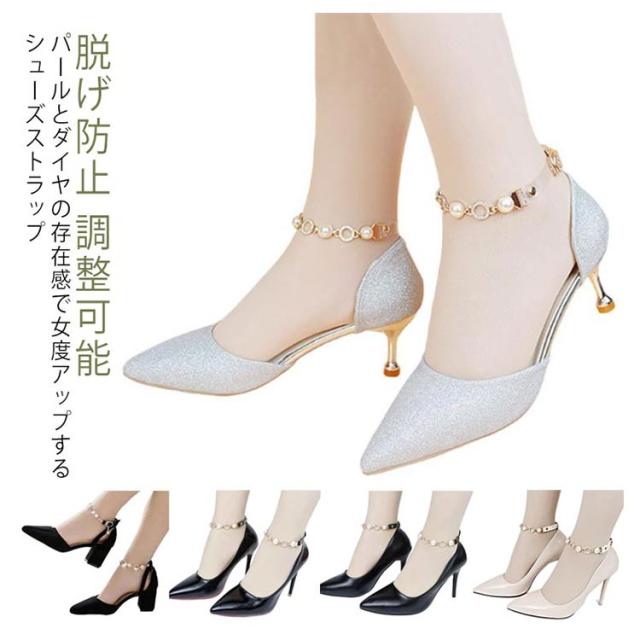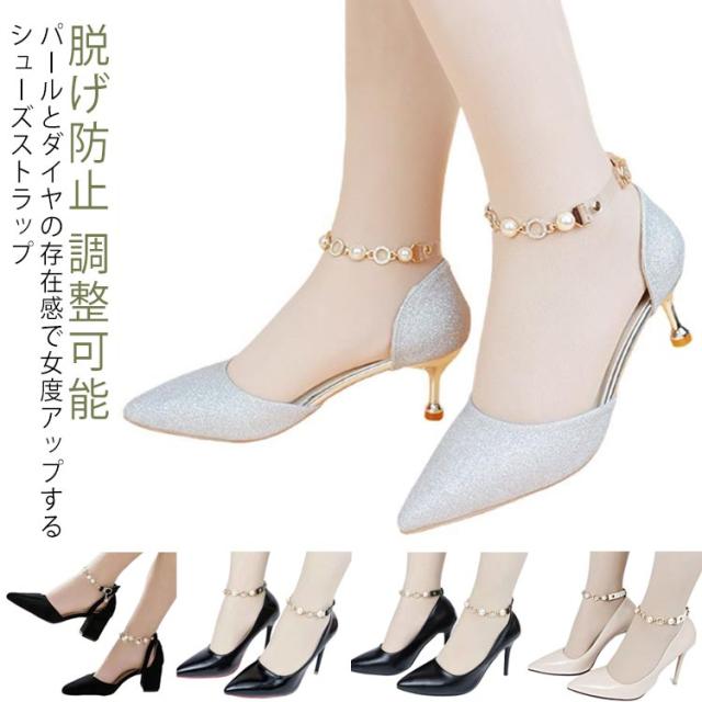 シューズベルト 脱げ防止 シューズストラップ アンクルストラップ レディース シューズバンド 調整可能 パンプスベルト パンプスストラップ 後付け 靴 バンド 滑り止め 脱げ防止 パンプスストラップ パンプスベルト サンダル ダンス 可愛い 靴アクセサリー パール 送料無料