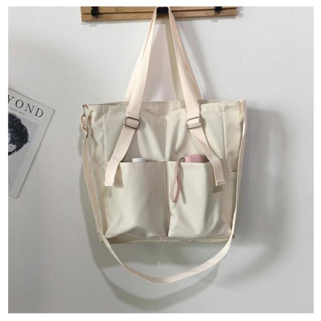 | 荷物の整理整頓がしやすくて大変便利なトートバッグは デイリーでも使いやすいサイズ感。 折りたたむと場所取らず、収納も簡単。 外部にある四ヶ所のポケットがボトルや傘カなどのヘビロテアイテムの収納に大活躍。 丈夫なキャンバス素材を採用する。長くご愛用いただけます♪ | |