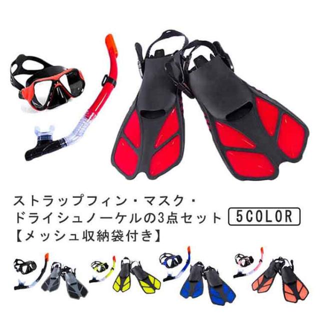 シュノーケル セット 大人用 マスク フィン 足ひれ ドライシュノーケル 3点セット シュノーケリングセット スノーケリング ドライスノーケル 大人 水中メガネ ゴーグル 足ヒレ スノーケル メッシュバッグ付き メンズ レディース 【送料無料】